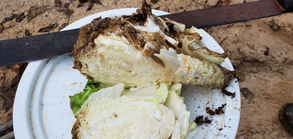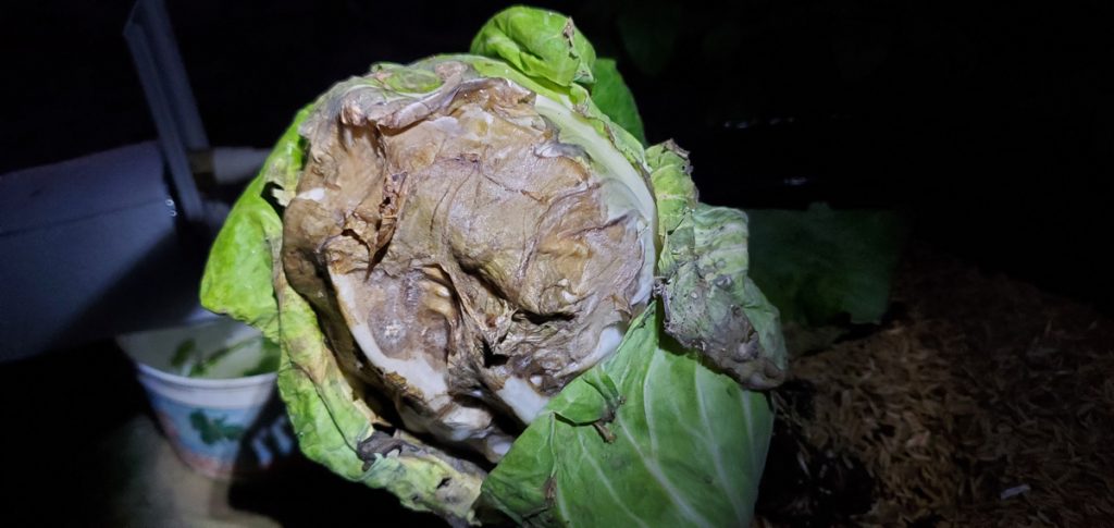 The cabbage went bad. I cut it open to see how much damage was done.