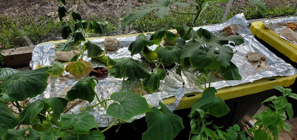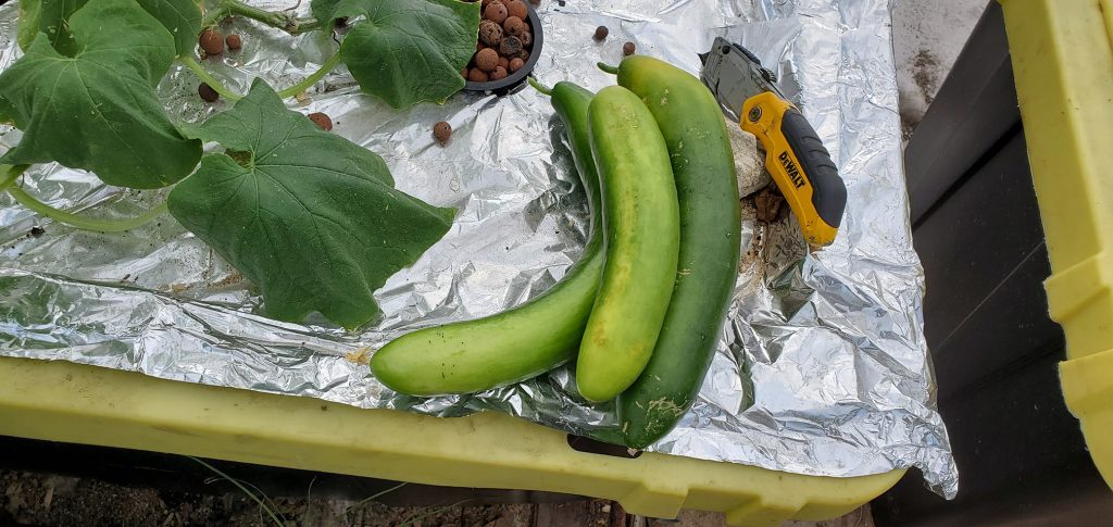 The third cucumber in this shot is from cucumber plant #1. It is now finished.