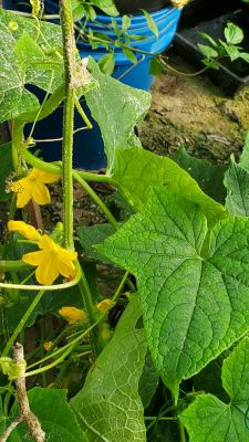 These are Pickle Barrel Hybrid cucumbers from Burpee Seed Company. This is one of ten seeds that germinated. I wasn't expecting this one to survive because I moved it around so much. I placed it at the end of the temporary hoop house, and it seemed to like that spot. I just fed it every two days or so, and here are the results so far.