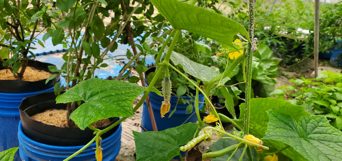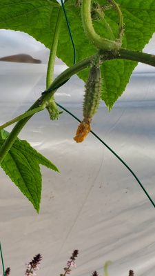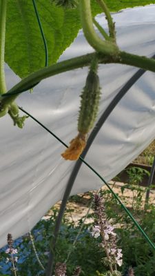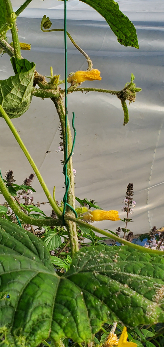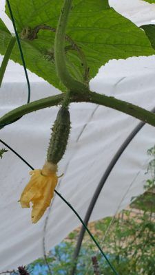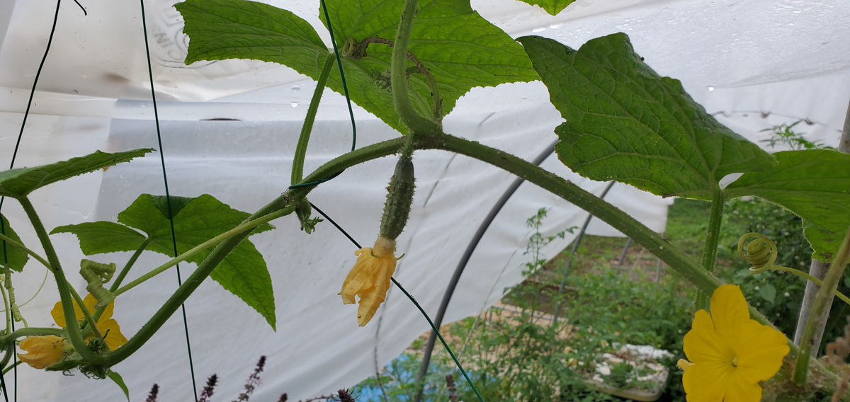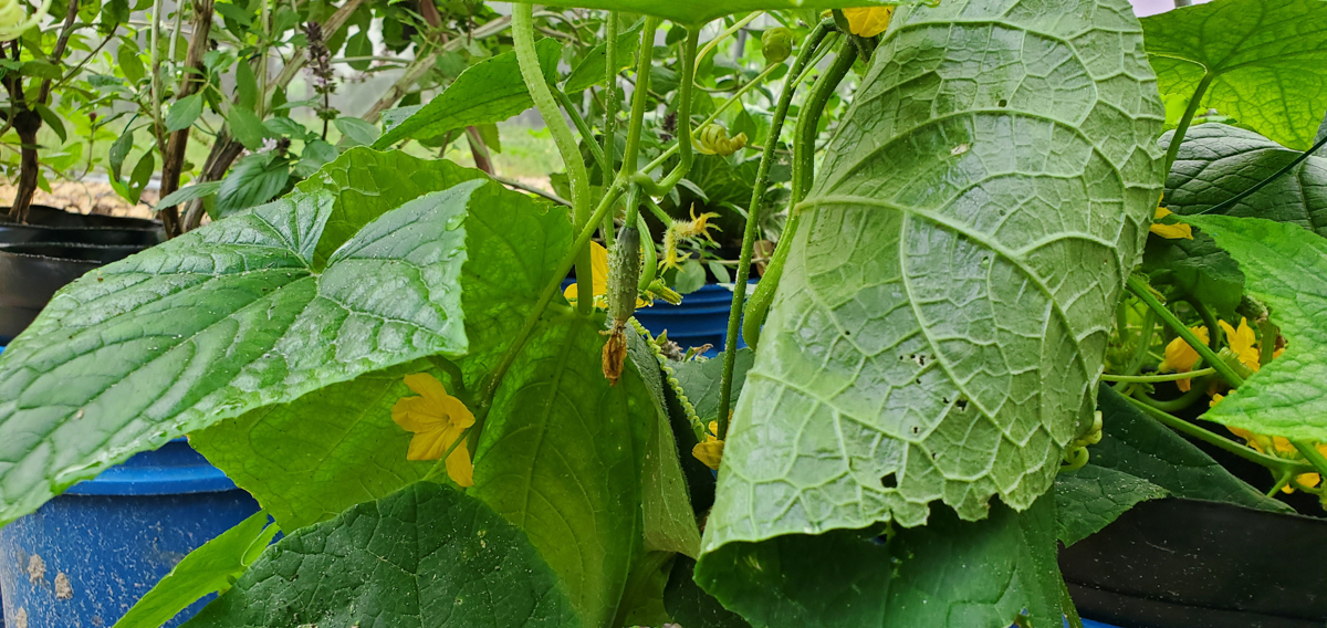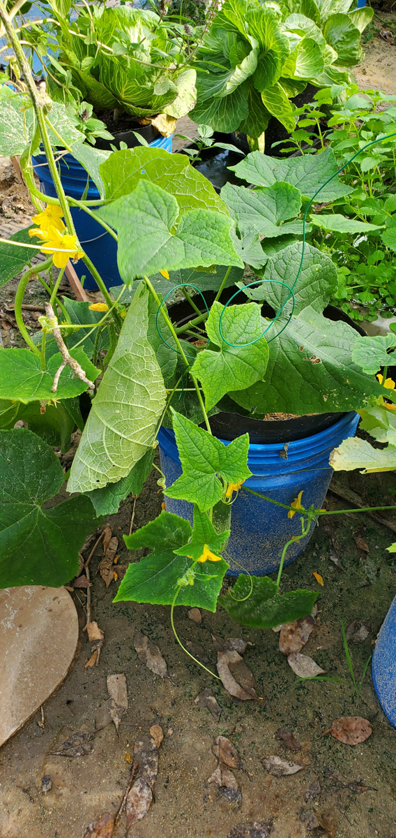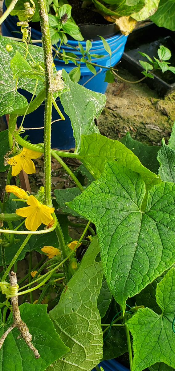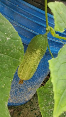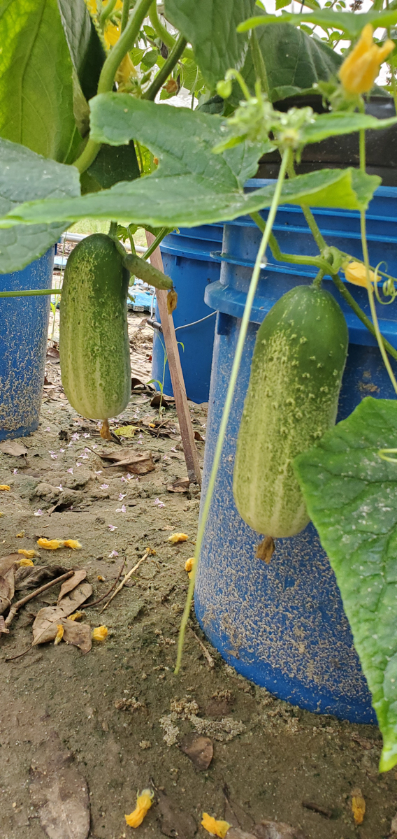 These are Pickle Barrel Hybrid cucumbers from Burpee Seed Company. This is one of ten seeds that germinated. I wasn't expecting this one to survive because I moved it around so much. I placed it at the end of the temporary hoop house, and it seemed to like that spot. I just fed it every two days or so, and here are the results so far.