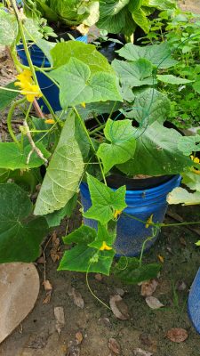 At the last check(today), four more cucumbers are starting to come in. I can hardly wait for those. This plant was put in hydroponic nutrients in the later part of September this year. I will be harvesting two larger ones today, as it is time for them to be harvested.