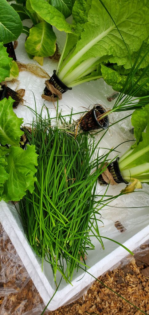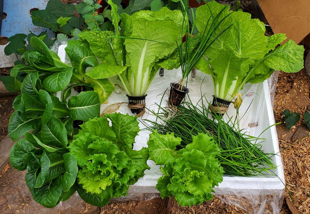 I have some Romaine lettuce, Asian leafy greens, Crispy lettuce, and Chinese Garlic.