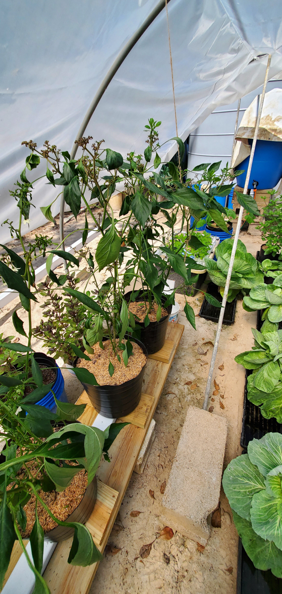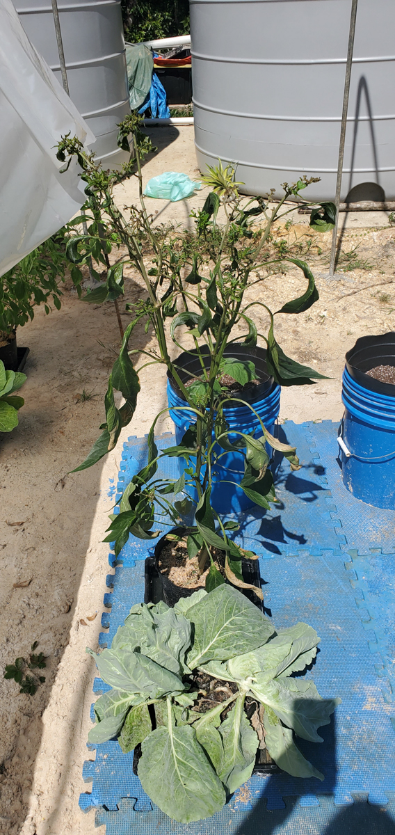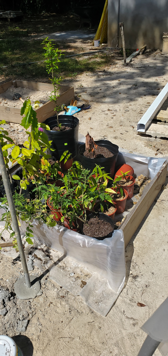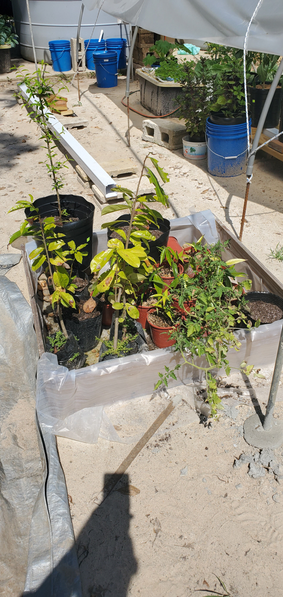 This little collection is a holding area for things to be planted around the house on the property. There is a pomegranate tree, two avocado trees, a cherry tomato plant, three sour sop trees, and ten ice cream bean trees.