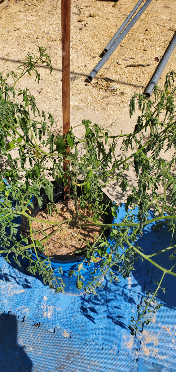 The Cherry tomato plant was supposed to be planted in the tomato patch but became an experiment.