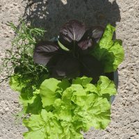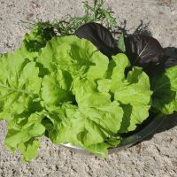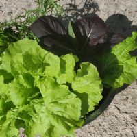 The greens started good, but then weather and pest took out 80 percent of those. I did manage to get two large bunches of greens, though. You can see those in the photos above.