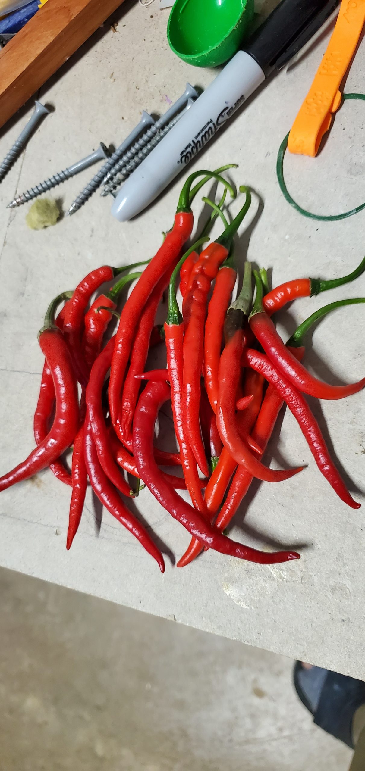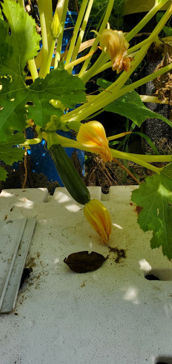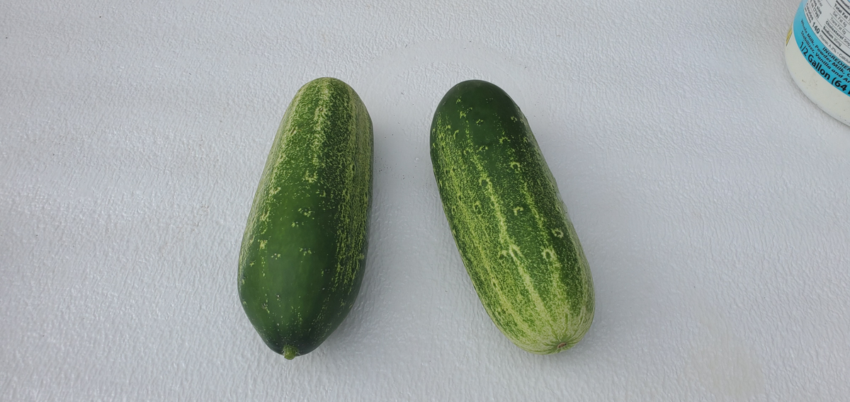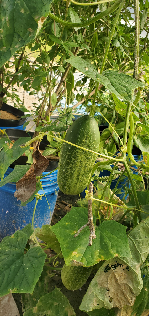 The cayenne pepper plants are producing a lot of peppers now. I must say that having them in the rail system is working well for them. The two tomato plants being used as an experiment are growing amazingly. I picked some more of the pickling cucumbers and basil.