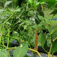 Well, things have been hectic for the past couple of months. I had to move the eggplants out of the greenhouse and into the front yard. I lost two of the four, but the two that made it have done well.