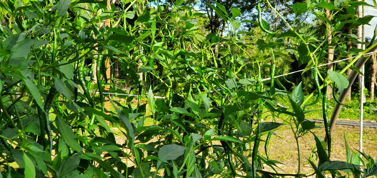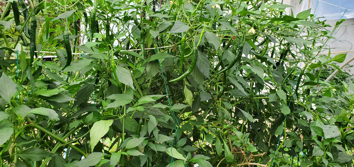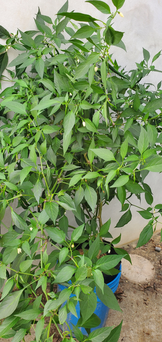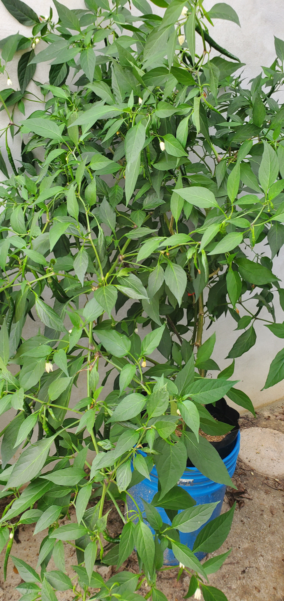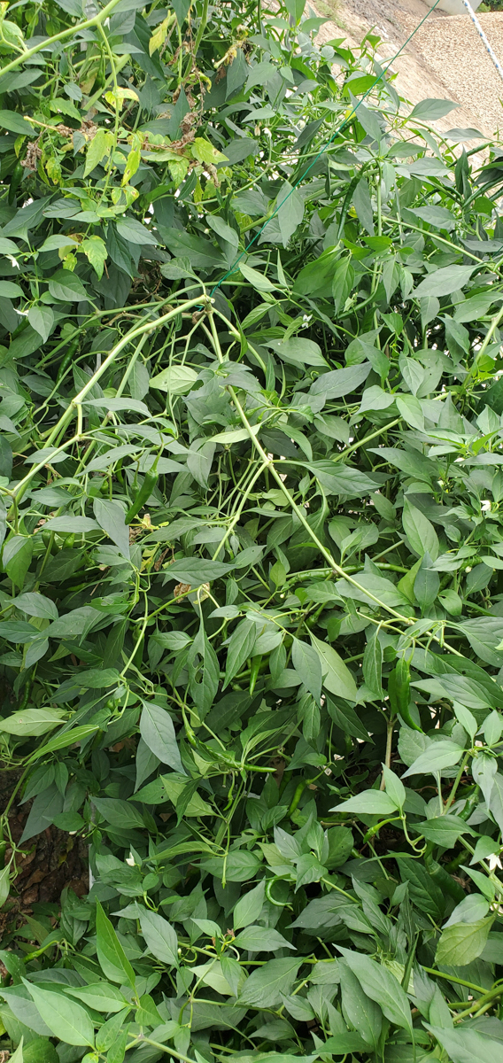 Well, I wasn't expecting the Cayenne pepper plants to get as big as they are or produce as much as they are, but I'm extremely happy with the results. All nine plants have produced over 20 pounds of peppers combined. I should have taken photos of each harvested pound, but I wasn't thinking about it. One of the plants didn't do well in this past month, and I had to prune it heavily. I found broken branches within it. I think it was due to the weight of all the peppers it produced. I thought I had enough support for it, but I did not.