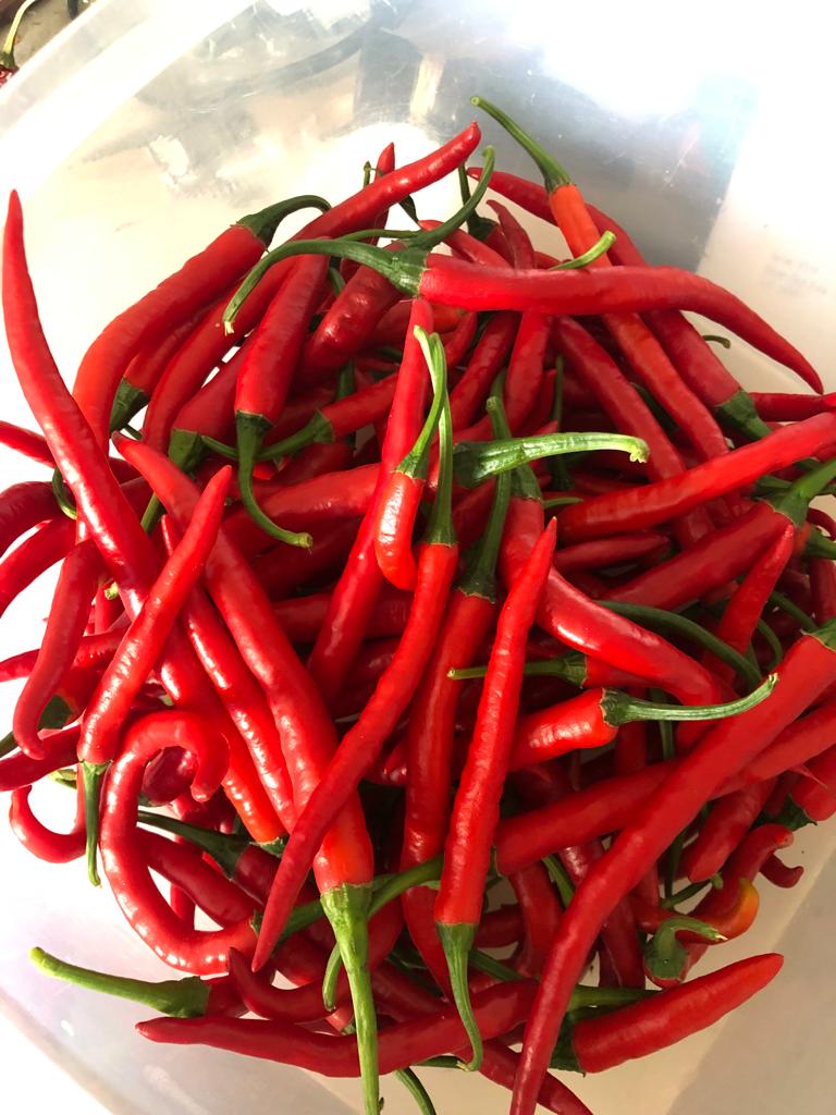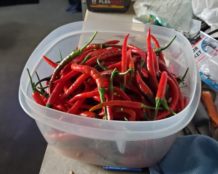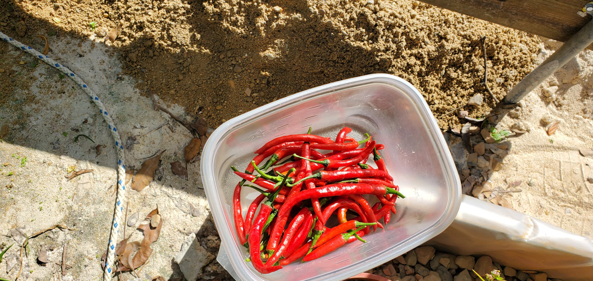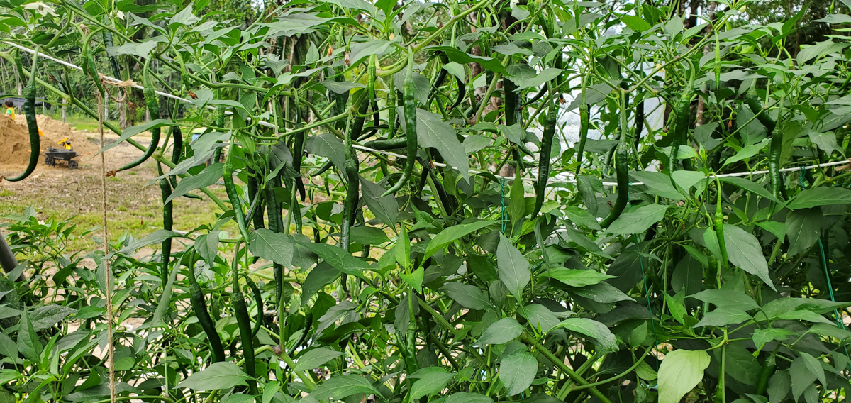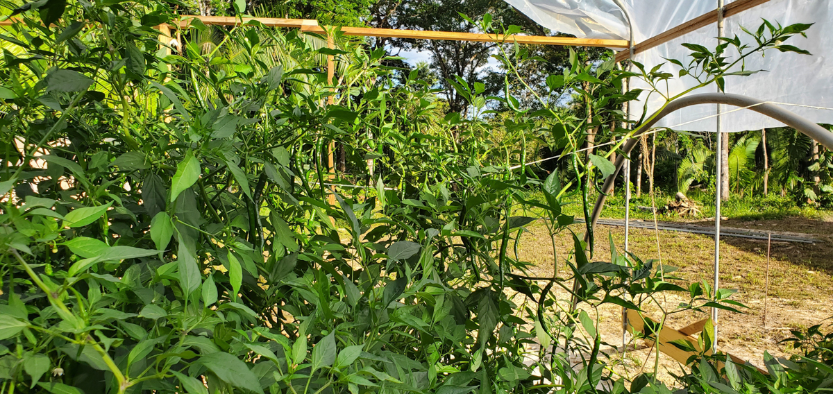 Well, I wasn't expecting the Cayenne pepper plants to get as big as they are or produce as much as they are, but I'm extremely happy with the results. All nine plants have produced over 20 pounds of peppers combined. I should have taken photos of each harvested pound, but I wasn't thinking about it. One of the plants didn't do well in this past month, and I had to prune it heavily. I found broken branches within it. I think it was due to the weight of all the peppers it produced. I thought I had enough support for it, but I did not.